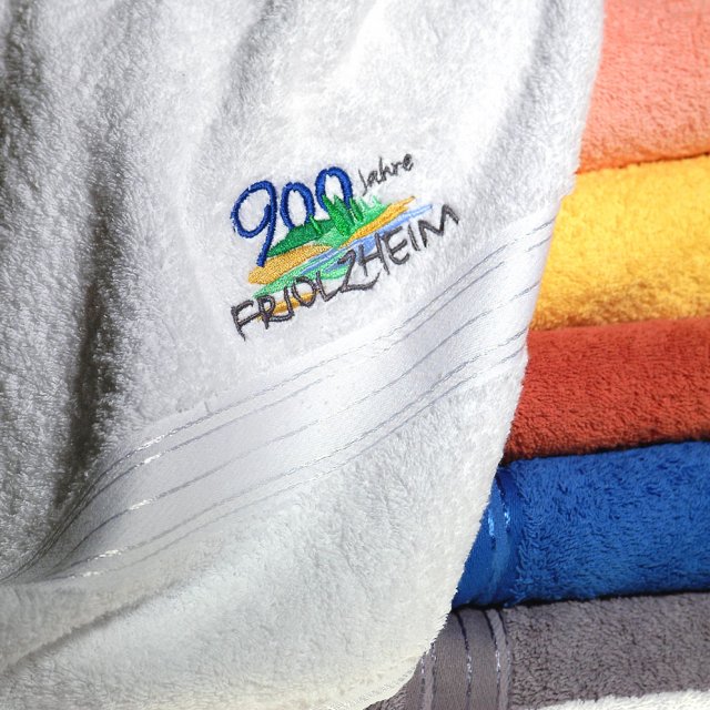 Dazu zählen sowohl klassische Frottierartikel als auch weitere textile Produkte wie Schürzen oder Geschirrhandtücher. Je nach Artikel unterscheiden sich Format und Einsatzbereich – entscheidend ist, dass das Motiv so platziert wird, dass es auf dem jeweiligen Textil stimmig wirkt.