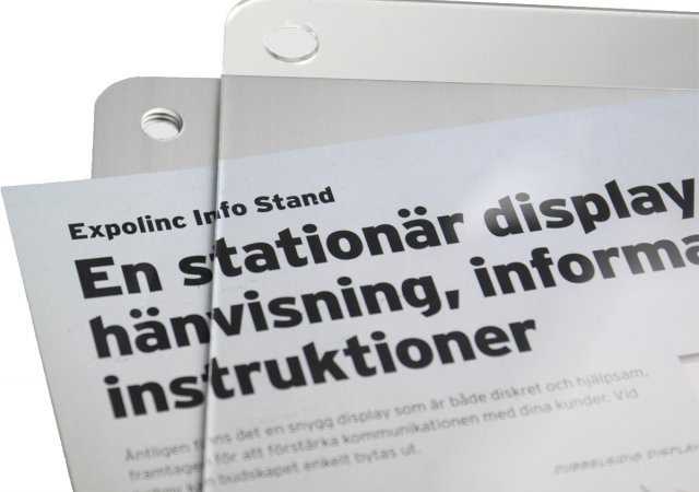 - Info Stand abgewinkelt: Die Botschaft befindet sich sicher zwischen Ober- und Unterplatte, die geschraubt verbunden sind