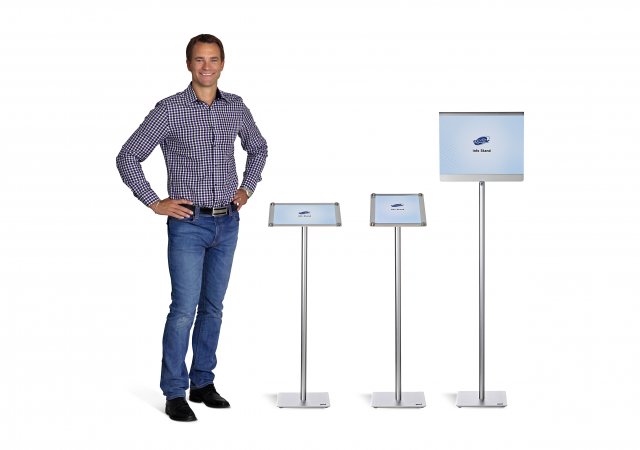 Der Info Stand ist ein stylisches und stabiles Display für Informationen in der Öffentlichkeit. Wechseln Sie Ihre Botschaft einfach und so oft Sie wünschen, sie befindet sich sicher hinter einer schützenden Acrylplatte, zwischen Ober- und Unterplatte, die geschraubt verbunden sind.